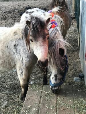 visit peeking through windows too. Everyone is in disbelief when a miniature horse jumps out of a mini van and shows up at their door!